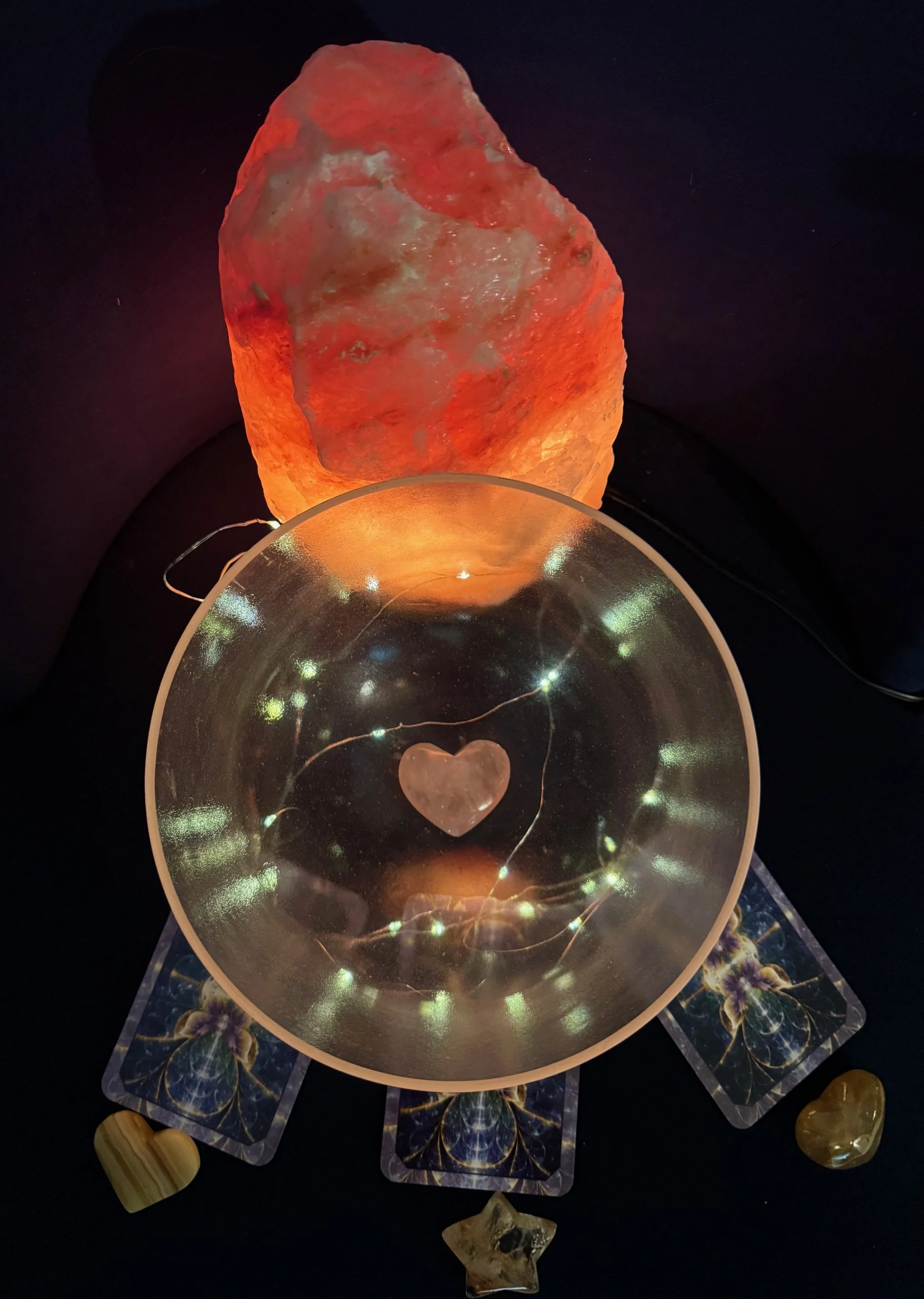 The crystal bowl is gently sounded, and from it a heart or star crystal is drawn. The crystal that emerges carries a message uniquely attuned to you in this moment.